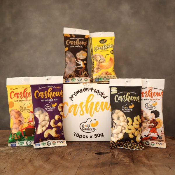 バリエーション豊かなカシューナッツ10種類の味。塩・無塩・コーヒー・チーズ・ココナッツ・チョコレート・ハニー・わさび・スパイシー・皮付、味の冒険をギフトとして!